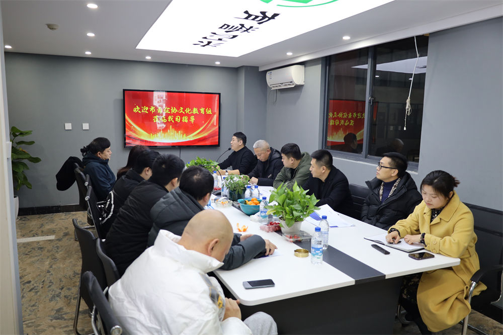 在美港装饰董事长陈鹏热情接待下,一行人深入了解了企业发展历程,企业组织构架、企业发展规划等情况。在交流会上,大家依次作自我介绍,纷纷各抒己见,现场互动气氛热烈。在交流过程中大家还围绕“2023文化教育组跨年聚会如何开展”进行了探讨。