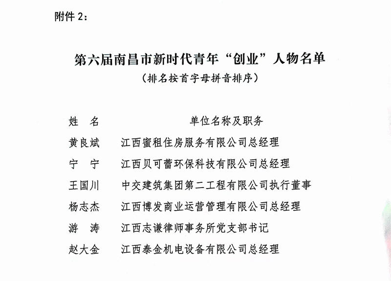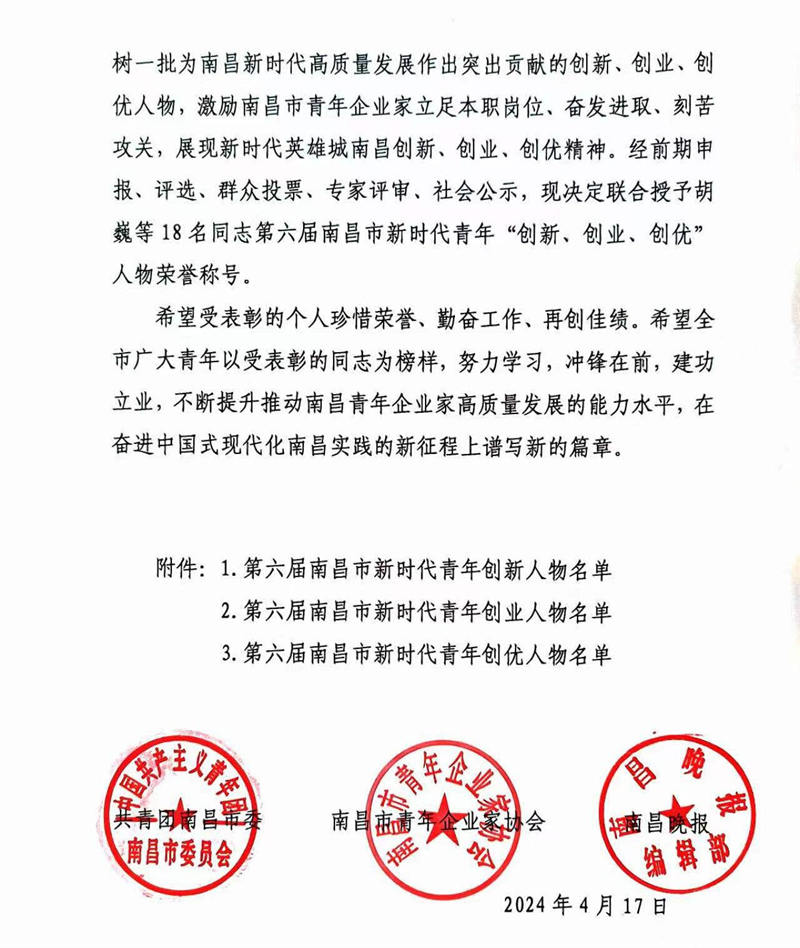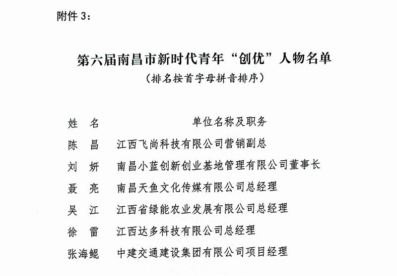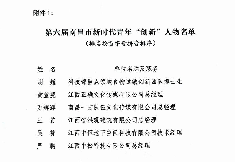 关于公布第六届南昌市新时代青年“创新、创业、创优”人物活动结果的通知