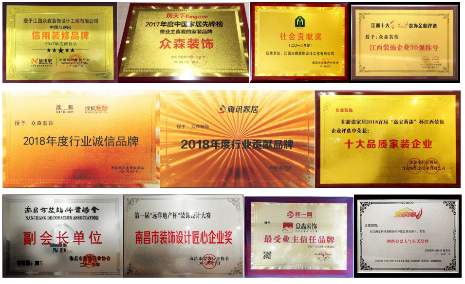 2012年,众森装饰以其卓越的服务体系,荣获“室内装饰A级资质”、 “南昌市诚信BB贝博艾弗森官方网站会员单位”等荣誉。