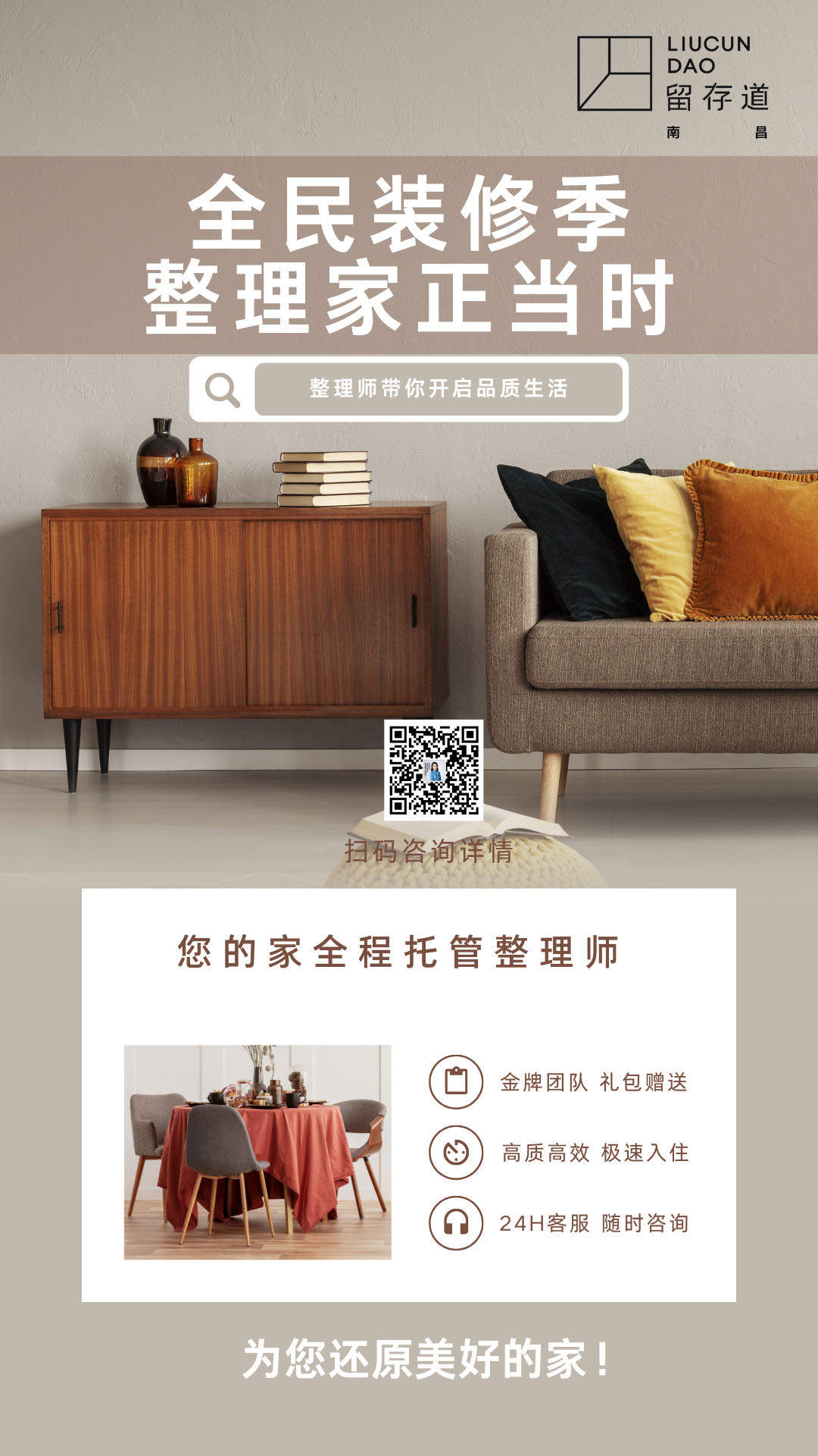 周栩逸老师自己在2018年创立的公司是南昌晴美家居服务有限公司,专注整理收纳行业的各项业务,2019年正式成立留存道整理学院南昌分院,我们是江西首家集上门整理收纳服务、收纳用品设计销售,收纳技能培训,体验沙龙为一体的实景教学样板的整理公司。南昌分院为家庭私人定制专属的整理收纳服务,帮助人们打造有序的高品质空间,我们用整理,还你一个美好生活。