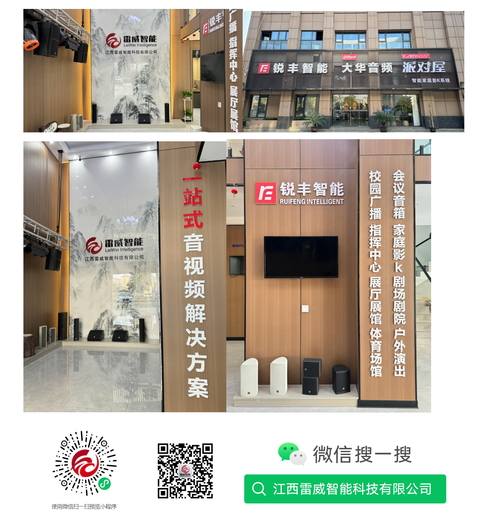 项目配合:智能会议、校园广播、家庭影K、展厅展馆、星级酒店、文旅演出、体育场馆、剧场剧院等;提供专业优质的声光电系统集成解决方案。
