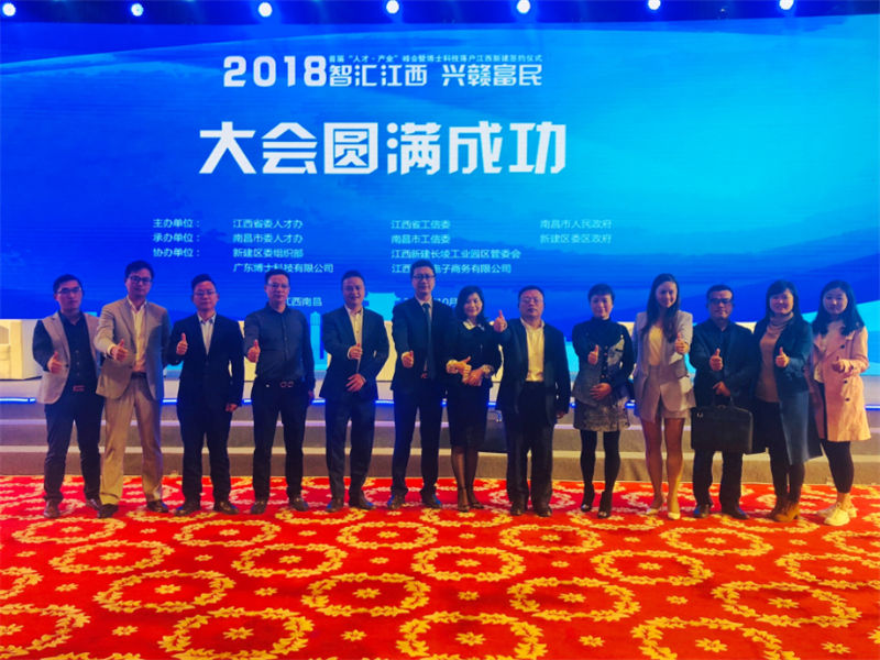 会上,市委副书记、市长刘建洋,工业和信息化部人才交流中心党委副书记陈新,省委组织部副部长、省委人才办主任徐忠,省工业和信息化委员会副主任钱昀分别致辞。区委书记李伟参与圆桌对话。区委副书记、区长陈吉炜代表区人民政府与博士科技集团进行签约。随后博士科技与江西财经大学共同授予江西博士鑫“人工智能产学研创新中心”牌匾。会议由副市长杨文斌主持。中国工程院院士孙玉、中国科学院院士陈新滋先生、俄罗斯工程院外籍院士刘焕彬作主旨演讲。