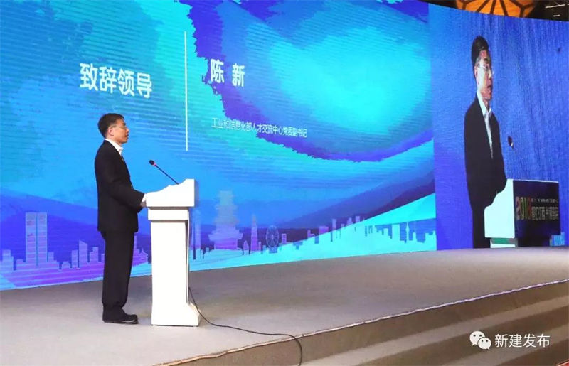 (工业和信息化部人才交流中心党委副书记陈新致辞)
