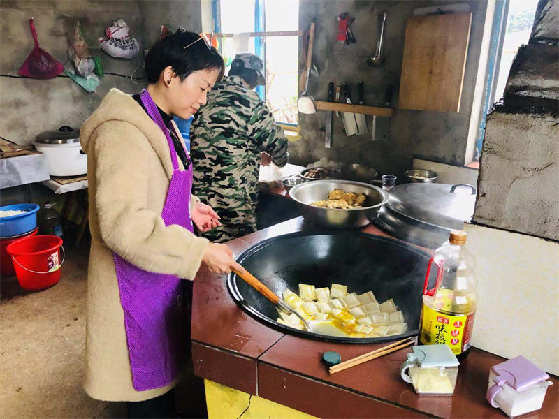 (会员家人为孩子们准备柴火饭)