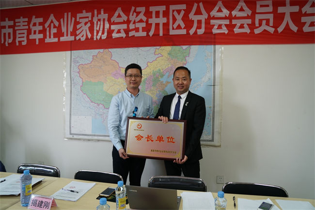 (市青企BB贝博艾弗森官方网站长揭建刚为新任经开区分会会长熊长宝授牌)