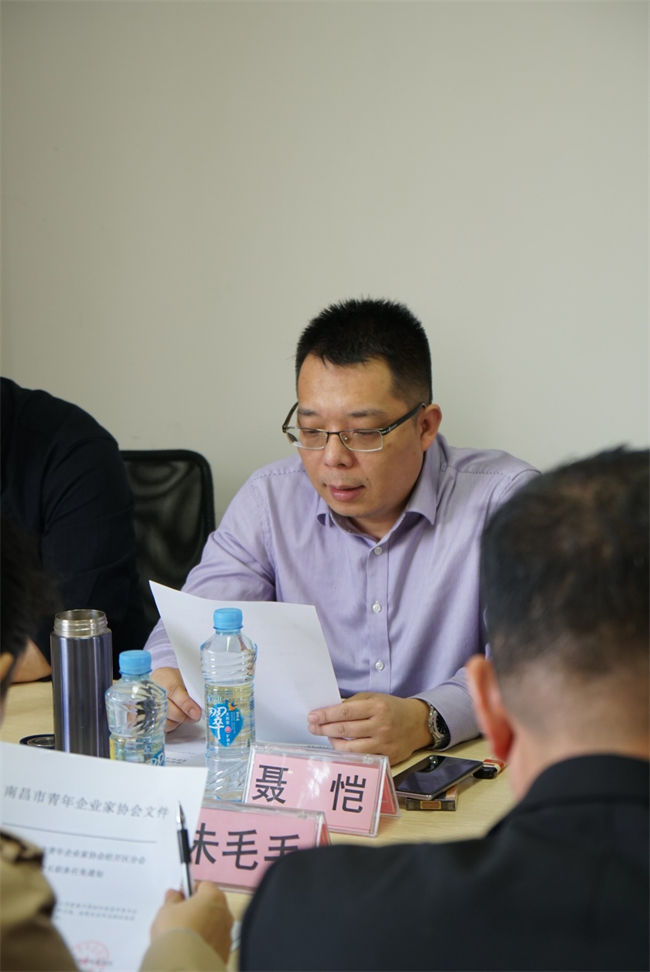 (市青企协执行会长聂恺宣读经开区分会新任会长职务任免通知)