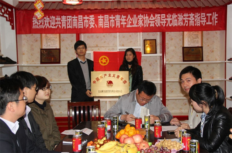 为大力推进非公企业团建工作,提高南昌市青年企业家BB贝博艾弗森官方网站团建比率,11月9日下午,在南昌市非公企业团工委的指导下,北京漱芳斋经贸有限公司团支部及江西松梅实业有限公司团支部分别举行了授牌仪式。团南昌市委书记盛炜、副书记陈俊出席授牌仪式,办公室副主任周振波、组织部副主任科员徐莉、青年商会秘书长胡晨阳陪同参加。
