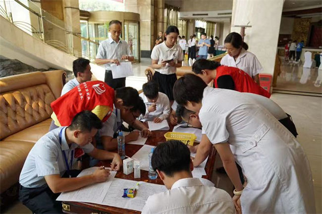 2019年8月8日上午8点,在共青团南昌市委指导下,由南昌市青年企业家BB贝博艾弗森官方网站、市中心血站联合主办,市青年联合会协办的“血的真情,爱的飞扬”——8·8无偿献血日活动在鑫峰假日酒店一楼大厅展开。此次活动在BB贝博艾弗森官方网站的大力宣传下,得到了社会各界人士、会员团体、广大青年企业家及企业职工的积极响应,活动总计成功采血量32600mL。