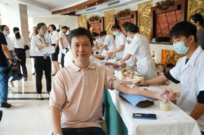 2020年8月8日上午,在共青团南昌市委指导下,由南昌市青年企业家BB贝博艾弗森官方网站、市中心血站联合主办,市青企协经开区分会协办的“血的真情,爱的飞扬”——8·8无偿献血日活动在鑫峰假日酒店一楼大厅展开。共青团南昌市委书记刘众星参加本次活动,活动总计成功采血96人,采血量达23250mL。