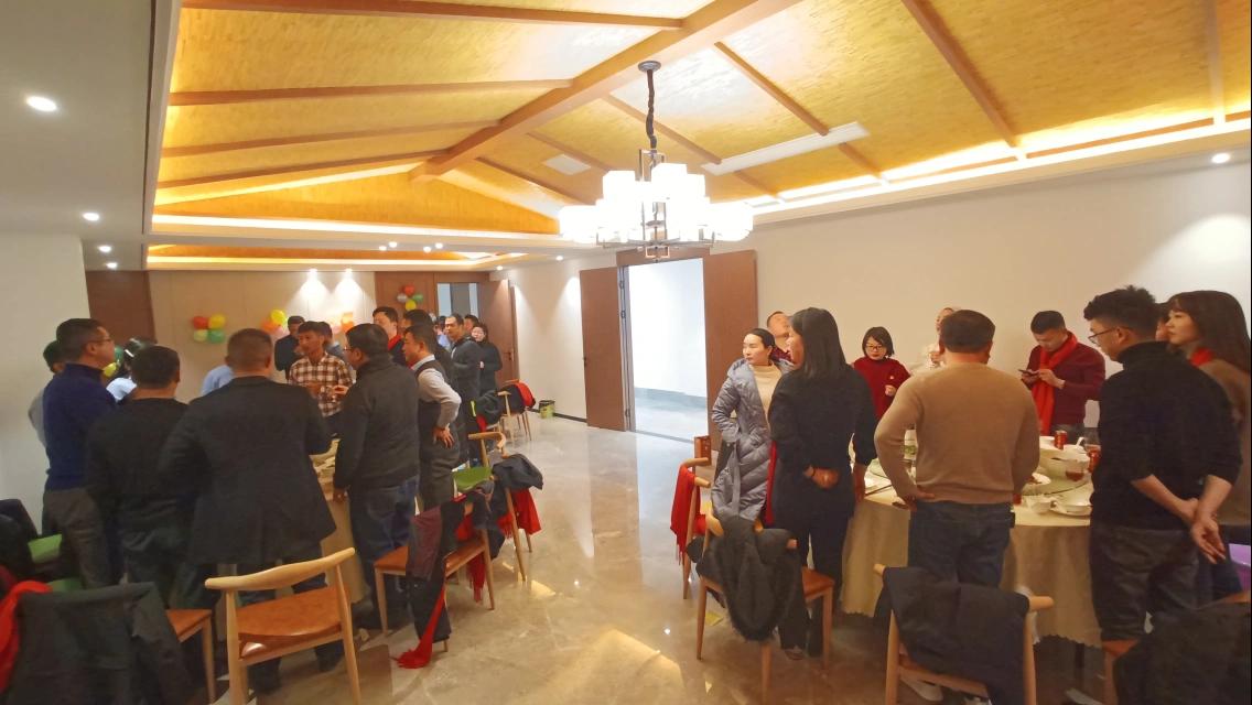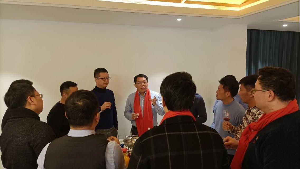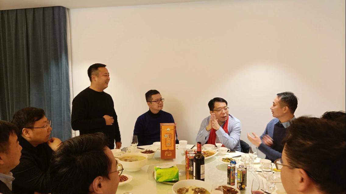 大家围桌而坐,欢聚一堂,其乐融融,亲如一家;共进晚餐,把酒言欢,把握现在,展望美好未来。建筑建材组组长陈武军在热闹的氛围中,首先为到场家人送上了新年祝福,祝愿大家在新的一年事业蒸蒸日上,牛气冲天!
