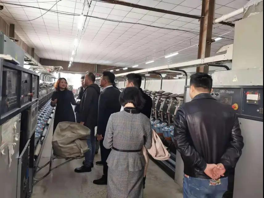 ????第一站来到位于安义县工业园区的源莱实业有限公司,公司成立于2016年,主要从事棉纱、棉布、针织纺品的生产销售,总经理涂春花详细介绍了该公司的发展规模、市场前景、销售模式、公司未来发展规划等情况,大家先后参观了办公大楼,传统纺织车间、流水线,对该公司的传统纺织工艺、严格质检标准及规范化管理等先进经验表示充分肯定及高度赞扬。