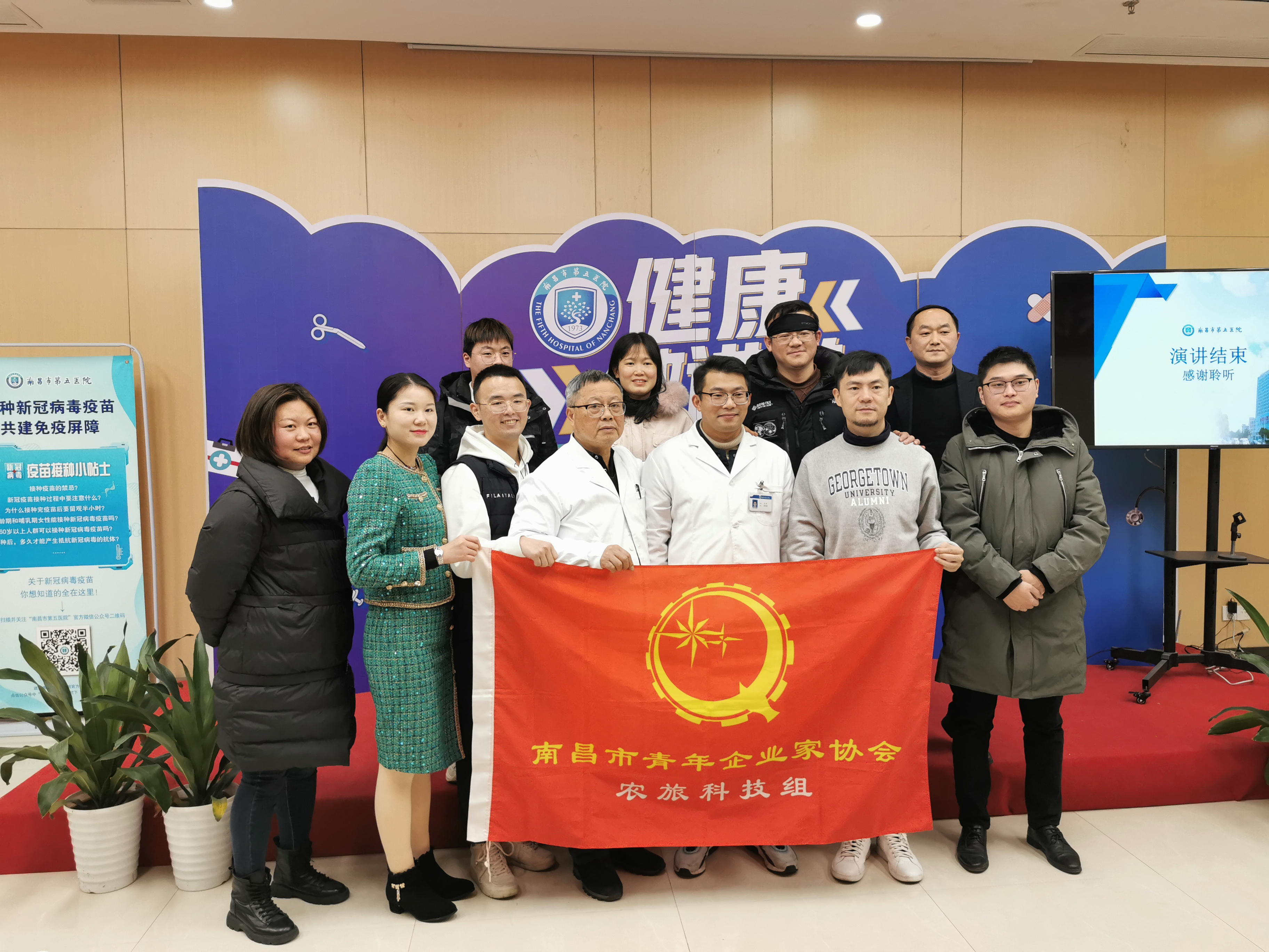 南昌市第五医院副院长沈海向青年企业家们介绍了医院概况并进行参观。大家在第五医院体检科现场体验碳14呼吸实验。随后,江西省名中医李主任给大家分享了冬季养生方面的常识及方法,大家受益匪浅。据了解,南昌市第五医院是一所设施设备先进,专业科室齐全,技术力量雄厚,集医疗、教学、科研、预防保健、康复为一体的二级甲等非营利性现代化综合性医院。