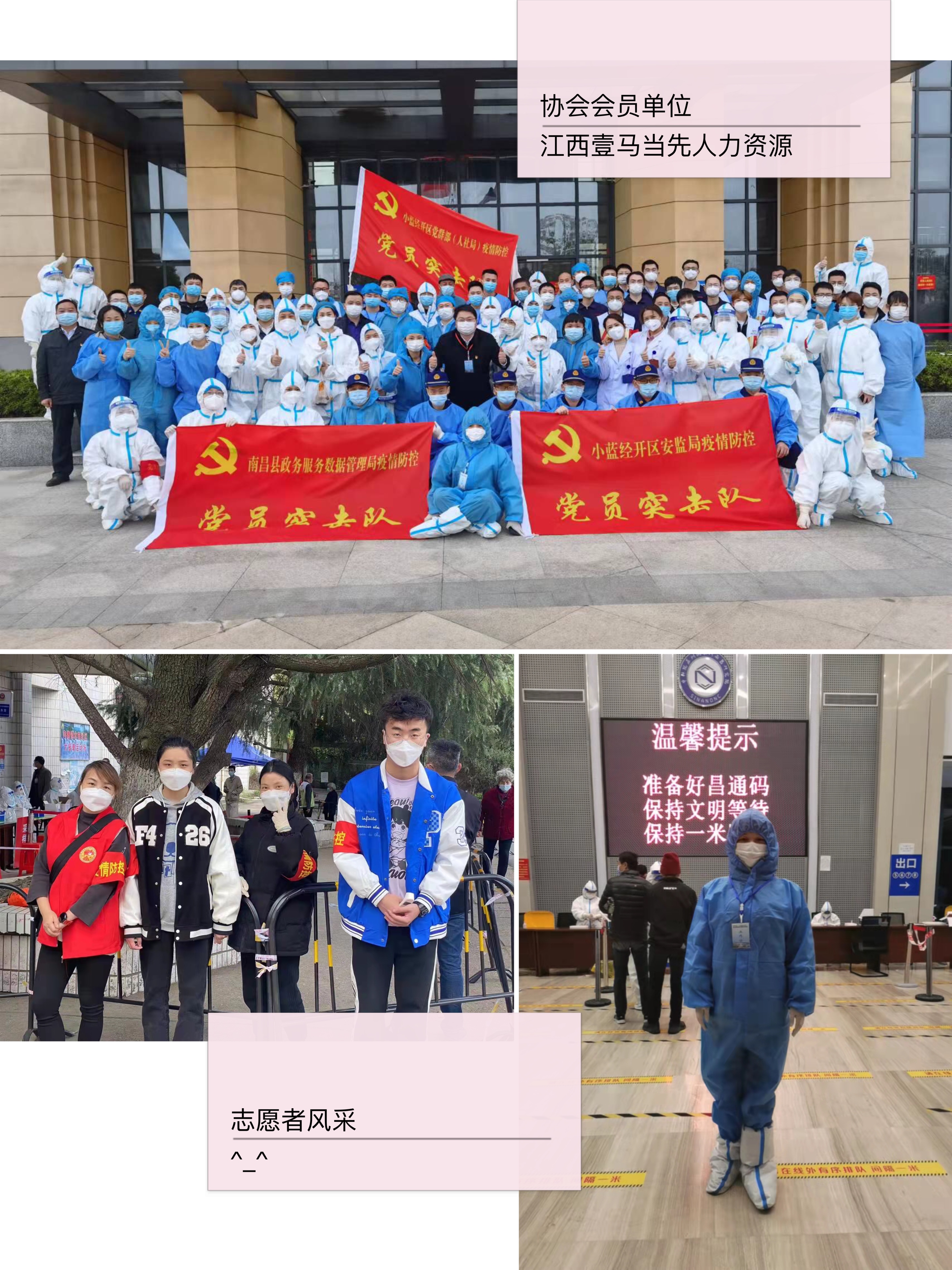 3月19日,BB贝博艾弗森官方网站会员单位--江西壹马当先人力资源有限公司负责人龚超积极响应南昌县共青团招募志愿者号召,组织公司8名员工争当志愿者,分别前往向塘风电核酸点、小蓝达利园核酸点、小蓝中科院纳米研究所核酸点,与医护人员一起协助做好核酸检测工作,助力南昌抗疫。同时在3月21日采购了一批面包送至核酸检测点用于防疫物资。