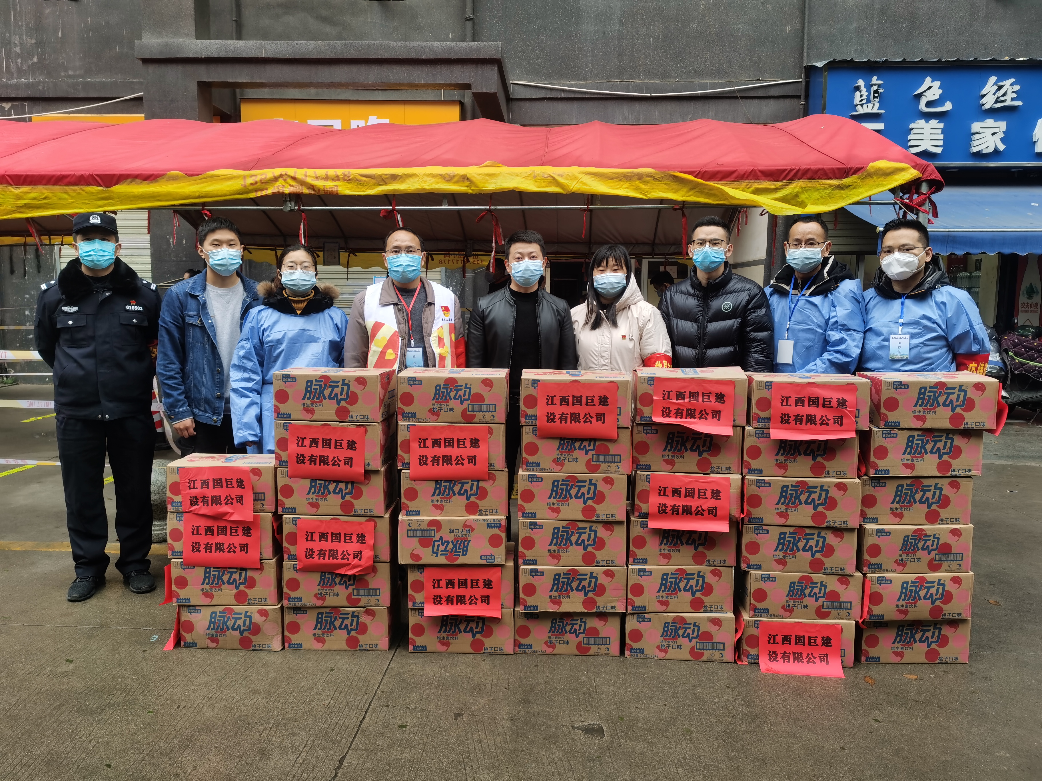 3月21日,BB贝博艾弗森官方网站会员、江西国巨建设有限公司董事长赵伟带领同事前往彭家居委会慰问,捐赠40箱脉动饮料(价值五千元)用于防疫物资。