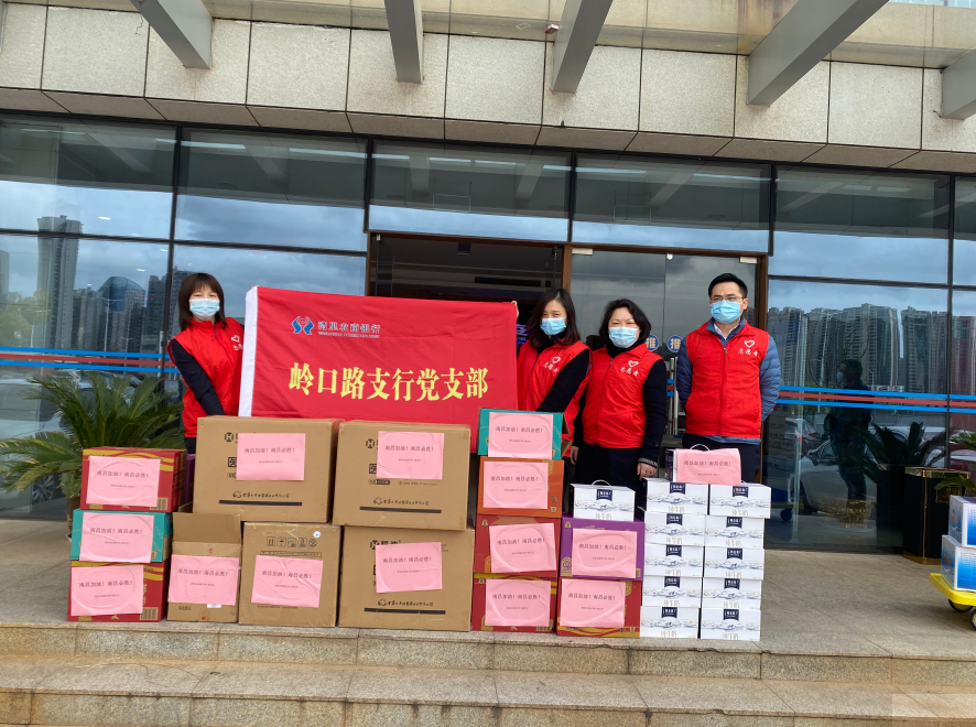 3月24日,BB贝博艾弗森官方网站会员单位、湾里农商银行岭口路支行党支部为九龙湖管理处核酸检测点的防疫人员送去牛奶、酒精、口罩等物资,与九龙湖管理处中心抗疫一线人员团结一心,守望相助,传递抗疫正能量。
