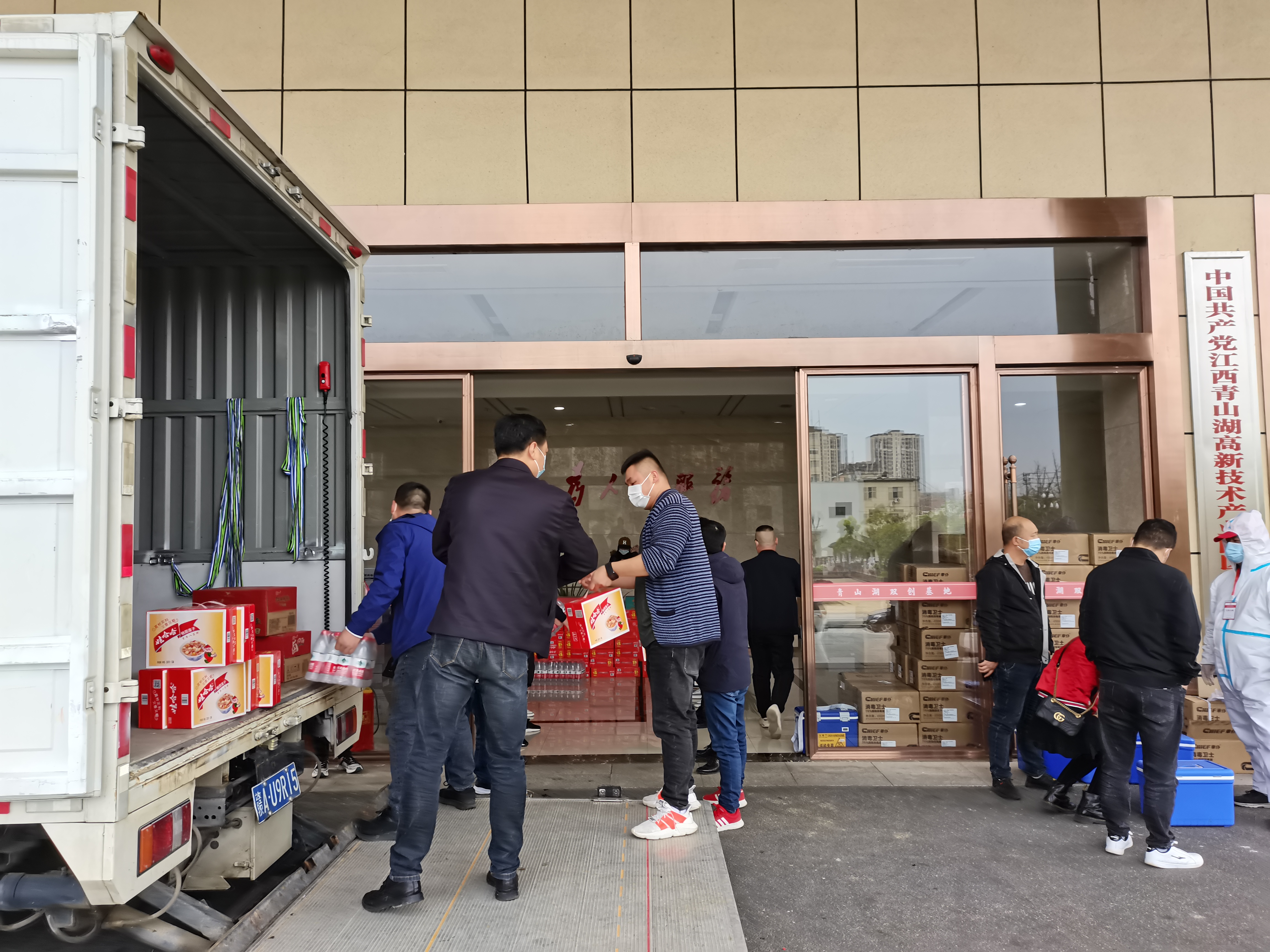 3月28日,BB贝博艾弗森官方网站会员单位、南昌京鲨餐饮服务有限公司(膳大福)万明为金域医学核酸检测点送去150份爱心鸡汤和10箱水果,看望慰问奋战在防疫一线的工作人员,助力南昌抗疫。