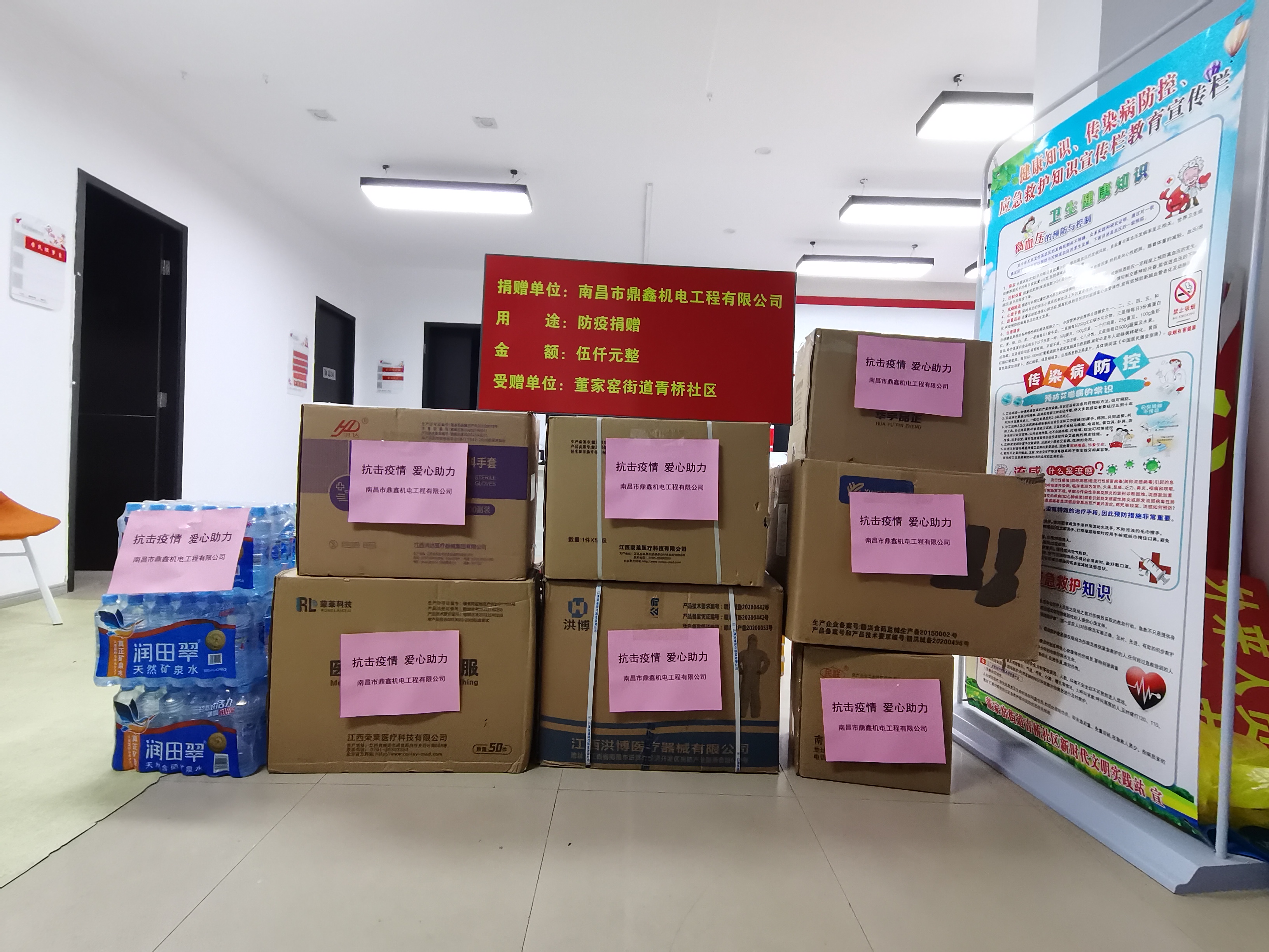 3月30日-31日,BB贝博艾弗森官方网站常务理事单位、南昌市鼎鑫机电工程有限公司董事长周晓春等人来到南昌市西湖区系马桩街道孺子路社区、东湖区董家窑街道青桥社区向无私奉献在一线的街办、社区志愿者、工作者们捐赠了现金及部分防疫物资,为所在社区尽绵薄之力。