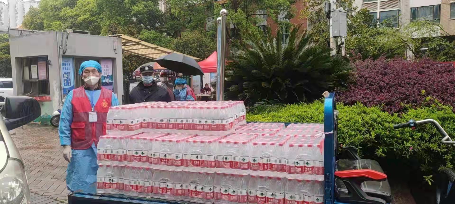 3月26日,BB贝博艾弗森官方网站副会长单位、南昌市群福针织制衣有限公司董事长带领团队消毒凝胶、八宝粥、方便面、矿泉水、饼干来到青山湖区疫情防控点,为疫情防控贡献力量。