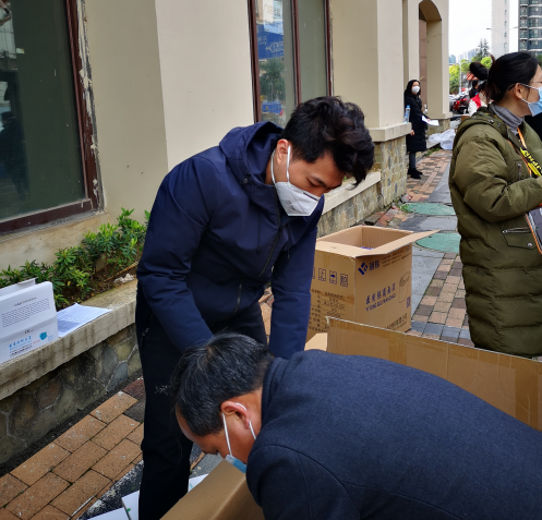 3月28日,市青企协党支部、市青企协团工委及BB贝博艾弗森官方网站秘书处化身志愿者,来到高新区金域医学核酸检测点,协助现场搬运爱心防疫物资,助力打赢疫情防控战。