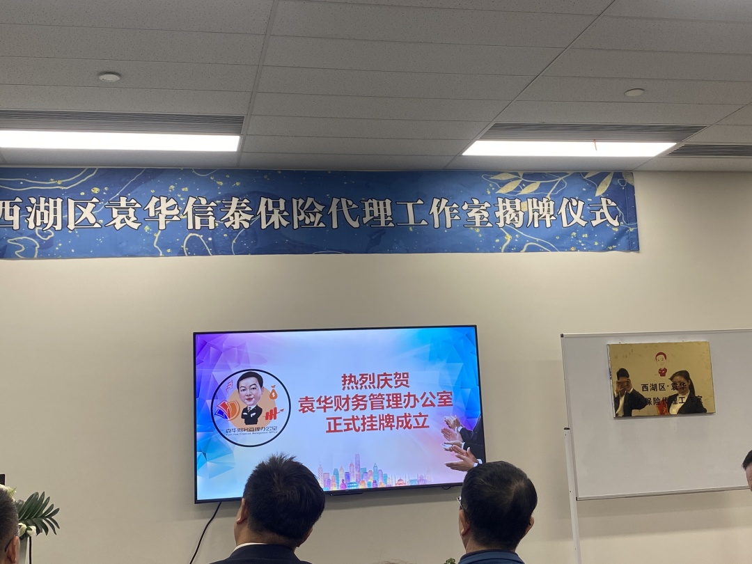 在现场热烈的掌声中,袁华信泰保险代理工作室正式揭牌成立。