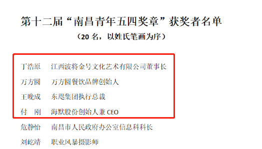 第十二届“南昌青年五四奖章”